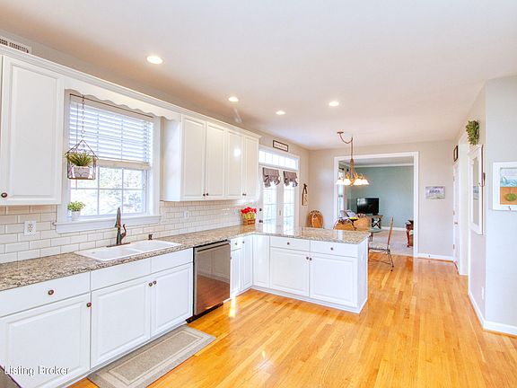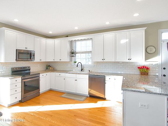This stunning 5-bedroom, 3.5-bathroom, multi story property embodies the essence of southern living & is ideal for both working and schooling from home! Nestled on a picturesque, partially wooded, 1.4 acre lot, you can immerse yourself in the outdoors from the charming wrap-around porch, back deck, or lower-level patio. With easy access to Peggy Baker Park, enjoy the little league games, playground, dog park & trail. Entering the home, you're greeted by an inviting entryway adorned with exquisite trim work, leading you to the expansive, eat-in kitchen. Featuring granite countertops, tile backsplash, and smart appliances, this updated kitchen is perfectly designed for entertaining. Adjacent to the dining area is the spacious living room, enhanced by a cozy gas fireplace. Completing this level is a formal dining room and a convenient guest bathroom. Upstairs you'll find the spacious primary suite with tile flooring, double sinks, and a separate bathtub and shower. Two additional guest bedrooms, a full guest bathroom, and a laundry room round out this floor. The third floor offers oversized 3rd and 4th guest bedrooms and a 3rd full bathroom, making it ideal for home office space or additional living quarters. The walkout basement features a family room and access to the lower-level garage. With its expansive lot and four floors of living, this magnificent home affords you the space and privacy you've been searching for. Some of the many updates in the past 5 years include a new roof, HVAC system with two new units, updated kitchen with new appliances, water heater, backup generator and new carpeting throughout. Situated in the sought-after Oldham County neighborhood of Heritage Place, enjoy access to award-winning neighborhood schools. Don't miss the opportunity to make this fantastic home yours. Schedule your personal tour today!