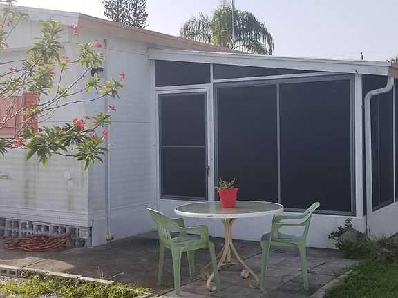 Enjoy beach living in this bright and cozy 1 bedroom / 1 bathroom 1963 CROSS Mobile Home located in Royal Garden Estates (an age-restricted 55+ community). Unit includes tons of storage, a cute front porch, back patio, screened in lanai with hookups for laundry (dryer included), a large 2-car carport, and a workshop perfect for storing kayaks/beach toys or tools. Workshop has power and running water. Situated just ~4 miles from Bradenton Beach, Anna Marie Island, and Longboat Key and just 1.5 miles from Parrot Cove Marina, a deep-water marina where you can spend the day boating or kayaking on calm, tranquil Palma Sola Bay. The marina is surrounded by nature with dolphins and manatees swimming by in the bay waters. This home is also close to shopping, banking, restaurants, hospitals and located in a fun, active community! Unfortunately, pets are not permitted. Needs some paint and TLC. Turnkey Furnished. The lot rent for this unit is about $425/per month and includes water/trash/sewage.