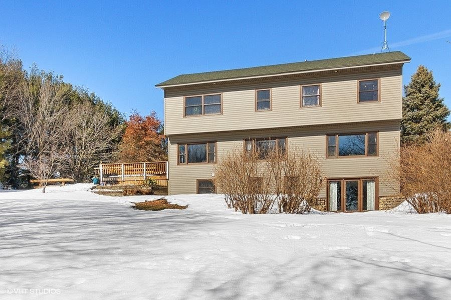 Sharp 5 bedroom home situated on 4.85 acres zone agriculture! Featuring eye popping updated living space in the highly sought after Prairie Hill/Hononegah School districts! The living room features 2 Story soaring wood ceiling with huge window allowing natural light to stream in! Open flow floor plan that fits todays lifestyle perfectly! Combined Kitchen/Dining area boasts granite counter tops, island, breakfast bar & stainless appliances. Dining area overlooks back yard & walks out to huge deck! Main floor laundry center. Master suite w/large closet & bath. 3 additional bedrooms & full bath upstairs are generously sized. Walk out lower level has 5th bedroom & rec room that walks out to patio! 2 car attached garage & 2 car detached with workshop & small barn in back yard. Outside you will find many fruit, fir, spruce trees & pasture. Updates:Furnace & Central A/C 2013/Roof 2010/Driveway 2009 and 2x6 construction! Fenced property/lower level bath believed to be plumbed for shower.