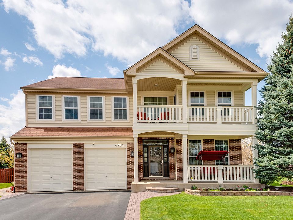 All you can say is WOW! From the moment you pull up to 6904 Homestead you will know how much love and care have been poured into this home. Impeccably maintained inside and out, this one is totally move in ready. On the main level you'll find 9' ceilings, hardwood floors lots of windows and a main level office (or is versatile enough to be a playroom, exercise room or craft room). The eat-in kitchen was just remodeled and features gorgeously updated backsplash, quartz countertops, all new stainless steel appliances and fixtures. Conveniently situated right by the garage, you'll find a magazine worthy laundry room that was just stylishly redone for you! Upstairs you'll find 4 great-sized bedrooms and a loft for extra hang out space. All bedrooms feature custom built-in closet organizers for you. The 2nd and 3rd bedrooms have lofted kids beds, which the sellers would be willing to leave if the buyers want them. The huge master bedroom features vaulted ceilings plenty of closet space (with organizers) and a private balcony to enjoy your morning cup of coffee. The basement is super useable as additional hang out space and/or work out area. In addition to the basement, there is a large crawl with tons of storage space. When you head outside, you'll be wowed with all that has been put into making this "THE" house for summertime! The composite deck features a pergola (with sail and shade - that will stay), a built in gas grill area, a hardscaped firepit and paver patio, play set and storage sheds! The large yard is fully fenced in and you can enjoy not having to look right into your neighbors house! 2 car heated garage. Legend Lakes has so much to offer - parks, ponds, sports fields and tons of fun! Important info: Furnace ('21), AC ('21), Kitchen remodel and appliances ('20-'22), Water Heater ('16), Deck/Patio (2015).