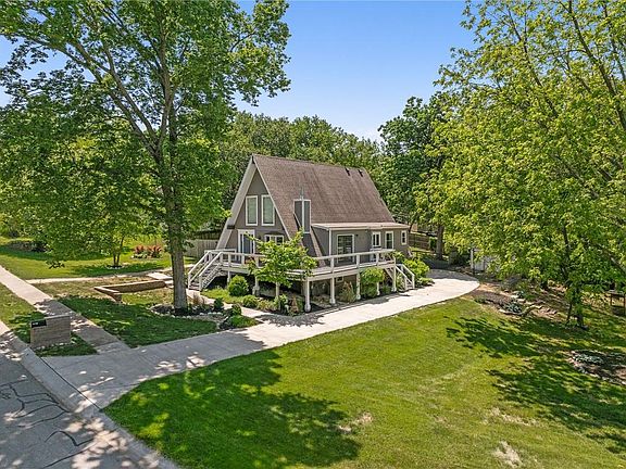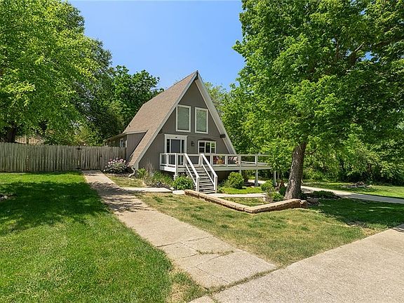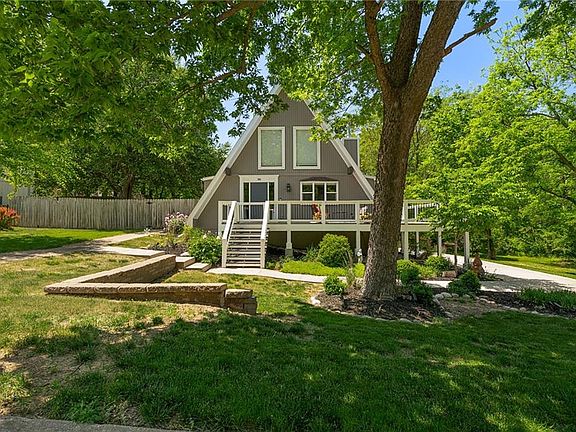 Amazing opportunity to purchase this one of a kind A-frame home in the heart of Western Shawnee! Truly breathtaking in every way, this home sits on a double lot at the bottom of a quiet cul-de-sac overlooking a pond. Main level layout features vaulted ceilings in great room with fireplace, gorgeous kitchen and dining area with a walk-in pantry plus full primary suite. The upper level features another primary bedroom. There are opportunities to enjoy the outdoors and a view from three exterior exits on the main level and a fantastic wrap-around deck. Finished walk-out LL has 3rd bedroom and a huge family room. Many renovations in the past 2 years. This home is nestled in a park-like setting. All interior paint done May 2025.