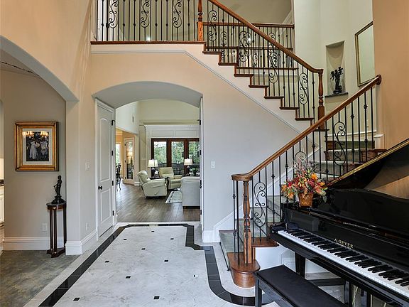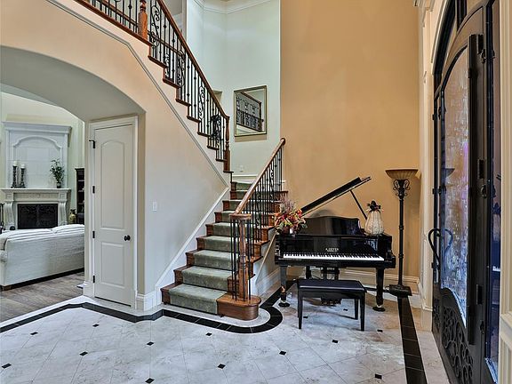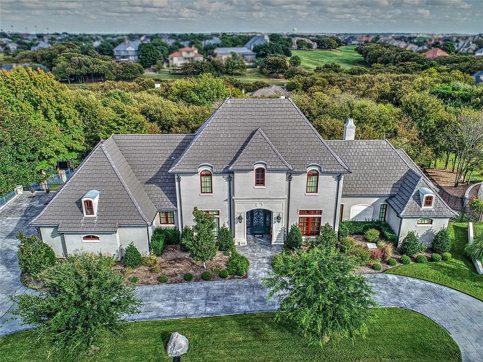 Wonderfully designed European inspired home with beautiful trees and lush landscaping, in guarded and gated Mira Vista. Circle, stamped concrete drive, decorative iron entry door, stacked moldings, plantation shutters and wood-look tile floors in the main living areas. Wall of Northern European doors in the main living room frame open at the height of the trees. Chefs kitchen with granite counter-tops, 6 burner cook-top, pot filler, double ovens, built-in refrigerator and a cozy breakfast room overlooking the gorgeous backyard. Gorgeous marble vanities in all bathrooms. 3-car over-sized garage. The back patio looks upon the park like setting with tons of room to roam. Custom built by John Askew.
