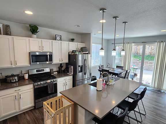 Welcome to this inviting 3-bedroom, 3-bathroom home situated on a desirable corner lot. Featuring an open-concept floor plan filled with natural light, this home is perfect for both relaxing and entertaining. The kitchen is a chef's dream with a large island, seamlessly connecting to the dining area that opens to a generous backyard ideal for gatherings and outdoor fun. Upstairs, you'll find a versatile loft space perfect for a home office, playroom, or additional living area. The master suite offers a peaceful retreat with his-and-hers sinks and ample space for comfort. Located just minutes from Fort Carson, Peterson AFB, and close to major shopping, dining, and entertainment. Don't miss this opportunity to own a home that truly has it all! Renter responsible for all utilities, yard maintenance no smoking
