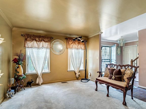 Welcome home to this beautiful 2 level Colonial in Mahogany Park! Beautifully landscaped with foundational trees, bushes, flowering shrubs, and a well manicured front lawn. Walk up to your covered front porch and into a light and bright interior with convenient coat closet, half bath, and hardwood floors that flow throughout most of the main level. To the right is the living room that features plush carpeting and crown molding. The spacious kitchen features plenty of cabinet and counter space, including a large center island with barstool seating. Also features tile backsplash, a double sink with detachable faucet and window view, and all stainless steel appliances, including a four door fridge with ice maker. Enjoy everyday meals in the neighboring breakfast nook that features a leaf motif ceiling fan. Relax afterwards in the family room with cooling ceiling fan, and sliding glass door that leads to an enclosed sun room. Den to the left of the entrance completes the level. Take the stairs to the main bedroom suite that features plush carpeting, cooling ceiling fan, vaulted ceiling, and large walk in closet. Also features an en-suite bathroom with dual sink vanity, shower/tub combo and a separate stall shower. Two bedrooms and a hall bath complete the level. The fully finished basement is perfect for additional living space or rec rec room and features a full bath. Take a break on your open air deck and fully fenced in backyard - the perfect place for a summertime BBQ! Near multiple shopping and dining destinations and minutes away from 695. Do not miss out on this one!