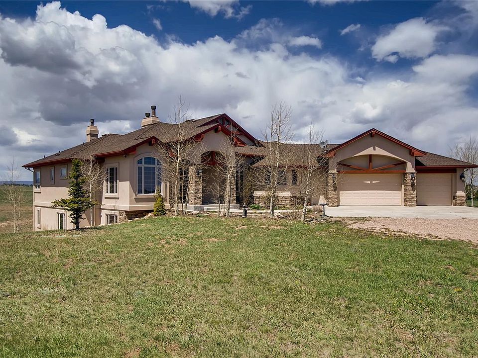 Welcome to a gorgeous, Black Forest custom ranch on 17.79 acres w/ easy access to Denver & the Springs. Located across from Flying Horse North, this hard to find, large, (already subdivided) parcel features beautiful Pikes Peak & Front Range views w/easterly views of the Forest & rolling terrain. Build 2nd home or enjoy the acreage & have investment for later. Five bedrooms, dedicated, main level office & five baths. Formals plus main level sitting room. One owner home features amazing attention to detail throughout. Beautiful home and property with country living, award winning District 38 schools, close to Flying Horse amenities. Set off the road which creates a private setting along with a 36x40, 1,440 sf shop (200 amp service & 12x16 door) for Class C RV, hobby or animal set up.