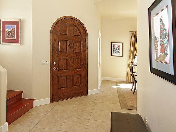 Beautiful Spanish Colonial in Enclave de Nube, a gated neighborhood of 5 custom homes tucked off Cloud Road, only 3.5 miles from Sabino Canyon. This immaculate home features granite countertops, GE Profile SS appliances and maple kitchen cabinets, downstairs junior bedroom suite with full bath, formal dining and living rooms, and wired theater system w/surround sound. A cherry wood staircase leads you to two bedrooms with Jack-and-Jill bath plus the grand master bedroom suite with large walk-in closet, private balcony, and large master bath with dual vanity and new glass shower. Outside, enjoy a quiet evening in your professionally landscaped backyard complete with a built-in gas fire pit and BBQ, custom seating and water feature. Option to buy fully furnished with separate bill of sale.