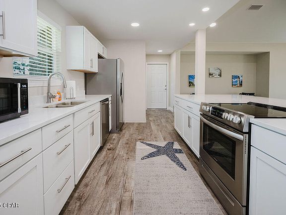 Welcome to 6905 Hugh Drive, where modern luxury meets coastal living! Completely remodeled from the studs up in 2023, this stunning 3-bedroom, 2-bathroom waterfront home sits on nearly 0.6 acres with 100 feet of deep, saltwater frontage on Callaway Bayou—your direct gateway to East Bay, Shell Island, and the Gulf beyond. Whether you're a boating enthusiast or simply seeking serenity by the water, this property delivers it all.