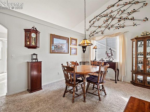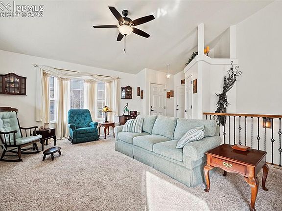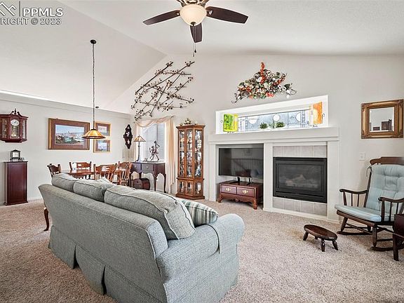 Make your next home this immaculate, well-cared for gem with mountain views, located in a safe, quiet neighborhood. Enjoy sunrise on the back patio or venture up the backyard slope to a smaller paved seating area to catch sunsets over the mountains.The fenced backyard is easily accessed via sliding glass door off the spacious kitchen. The large family room/dining area features a cathedral ceiling and includes a gas fireplace for a relaxing gathering. Enjoy wonderful natural light through one of the home’s two bay windows with views of Pikes Peak. Tiled entryway, bathrooms and kitchen allow for easy maintenance; good quality, clean carpet in main and bedrooms, hall and stairs in this non-smoking home. Access the full, partially finished basement via carpeted stairs with elegant rubbed bronze balusters for the perfect large space for interests from art studio, entertainment lounge, bar area, playroom, fitness area – only limited by your imagination! The space also includes a laundry room. Ample closet space includes large custom-built closet nook off the bathroom in the main bedroom in addition to nearly full closet wall in that bedroom. Within easy walking distance to Widefield Community Park, as well as MLK elementary school, this attractive, move-in-ready home is waiting to welcome you! Travel to the airport is under 15 minutes.