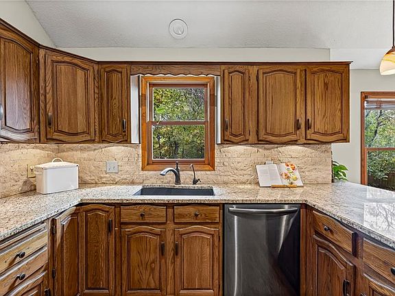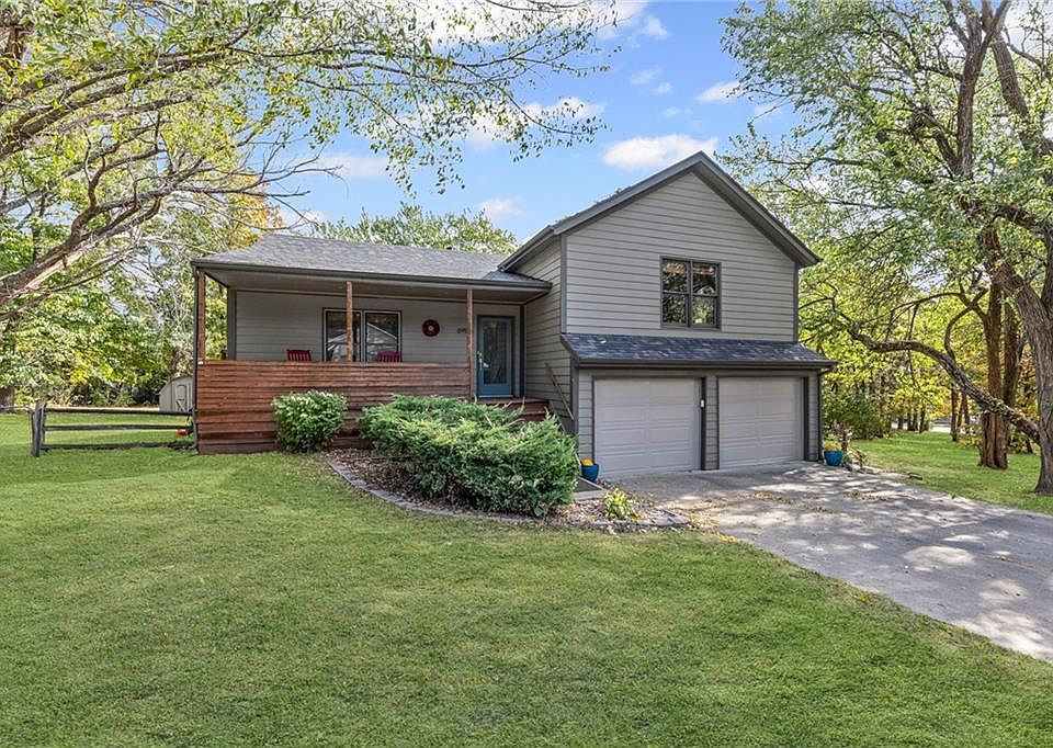 Talk about a wooded oasis but in Shawnee! This gorgeous home nestled on almost 3/4 acre is in the coveted De Soto school district. Its large, covered front porch is the perfect place to sit and relax. Once you walk in, the soaring ceilings will greet you with a large living room and updated kitchen. The eat-in kitchen looks over the other generous sitting room. Upstairs you'll find three bedrooms and two full bathrooms. The basement is also finished with an office/craft space that can be used or transformed to your liking. Brand new roof/gutters installed October 2025 (still waiting on the gutter installation). Pictures will be posted mid-day October 18th.
