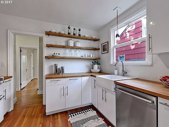 Sought after Arbor Lodge perfection! This three bedroom, one bath home has been updated with modern flare. The European style kitchen with butcher block counters and gas appliances is seriously hip. Hardwood floors and custom built-ins galore. Two wood burning fireplaces, shop, and a detached garage! Just blocks away from Adidas, close to St. John's and Kenton, this location can't be beat!