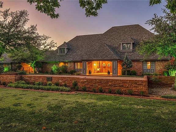 NEWLY PRICED! NEW POOL PLASTER! Custom Built Home, 2nd owner since 1985, close to the Oklahoma City Golf & Country Club. Large circle drive with plenty of room for parking and an electric gate. Beautiful formal living with fireplace and views of the pool. Primary bedroom with fireplace and builtins. Primary bath has double vanities and 2 walk in closets. Secondary bedroom on the main level. Open kitchen and family room with breakfast area and fireplace. Guest quarters with living/kitchen/bed/bath attached to the garage. Guest quarters could be the 6th bedroom. Expansive outdoors with pool and cabana with half bath.