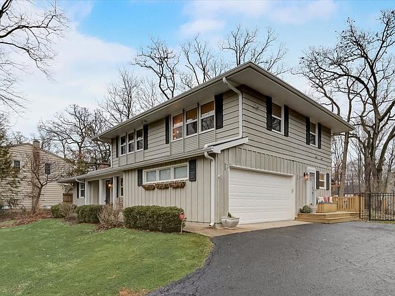 Under contract, no showings at this time. Charming and Chic in sought after COVERED BRIDGE TRAILS. Nestled on a quiet street and surrounded by mature trees, this 4 Bed, 2.5 Bath home is set further back on .56 acres. Enjoy the privacy and beautiful setting of the outdoor lighting and wooded lot while entertaining on the brick paver patio (2022) or catching some shade under the retractable awning on the deck (2020). Professionally landscaped. This 2 story Colonial is tastefully updated while exuding charming character with the tasteful decor and features such as wood burning fireplace, french doors, wainscoting and more! All 4 bedrooms are spacious and on the 2nd level. You'll also note there's hardwood flooring on 2nd level. The full bath (renovated 2023) and the Primary bath (renovated 2023) are stunning! Primary bedroom is a generous size with 2 closets and barn doors leading to a tranquil bath renovation (2023). The kitchen boasts cherry cabinetry, granite countertops and opens to the family room. Picture yourself having your morning coffee and soaking in the sun in the sunroom with sliders leading to the patio or deck. Head over to the den for a game of pool and a cocktail or get cozy by the fire in the living room. The living room is adorned by french doors plus there's hardwood floors under the carpet. The basement houses the laundry room and is setup for a great workout space. This is a must see!!! Close to shopping and dining in downtown Crystal Lake. Metra train station only 1.6 miles away. Veterans Acres park and Sterne's Woods Nature Preserve right at your doorstep, and award winning Prairie Ridge High School! Seller's prefer a 5/15/23 or sooner close. Furnishings may be included at the right price or sold separately. A preferred lender offers a reduced interest rate for this listing.