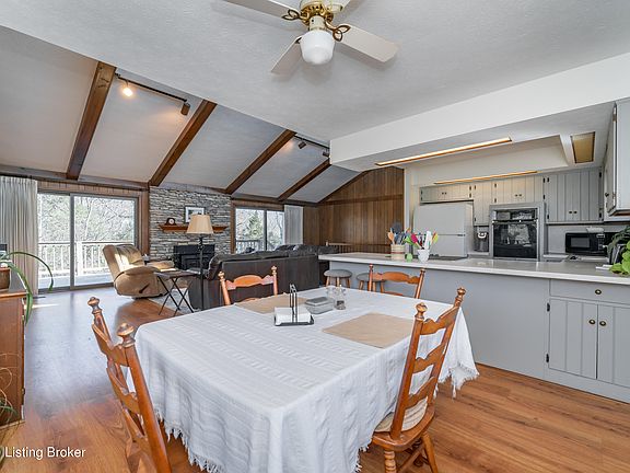 Welcome to this private lot with an open living concept. The natural light in the home is fantastic. Inside you will find a great place to store all of your books in the large floor to ceiling book shelves. There are two bedrooms on the first floor and room to make a third bedroom in the basement. You could even make a the owner's suite in the basement. The GREAT room opens to a large deck over looking a fenced in yard that backs up to your woods. The basement walks out to the fenced in area for your dog. While the property is 5.10 acres you do not have to mow all of it. There is a nice wooded area and another green space with a creek. The lower level garage has the for your two cars and an area to create a work shop or store your lawn equipment. There are two great working wood burning stoves you can use to heat the house in addition to the furnace and save on your electric bill.