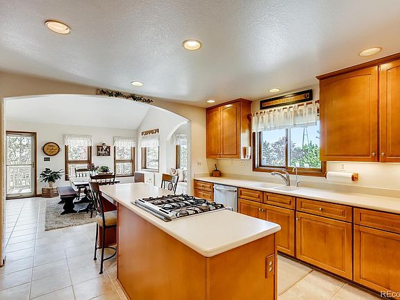 Sitting atop 2.42 acres in Arapahoe Meadows, this fabulous 2-story has over 4,100 square feet. You'll find plenty of opportunities to enjoy the mountain views on this private oasis. 3,420 square foot outbuilding with 220 electrical service, 13 ft overhead door for RV storage and separate 10 ft garage door; Kitchen features Corian counters, center island with breakfast bar, maple cabinetry with pull-out shelves and pantry; Open family room features a gas fireplace with marble surround and acacia wood floors; Dining room; Master bedroom features private deck to enjoy the mountain views and private master bath. Upper Floor with loft, two additional bedrooms and full bath. Finished Walk-out basement with rec room, game room with slider to patio, built-in bar, study, bedroom and full bath. Three tier deck with hot tub, two storage sheds, 3-car attached garage. Freedom from the City, yet within a mile of numerous restaurants, shopping & C-470.