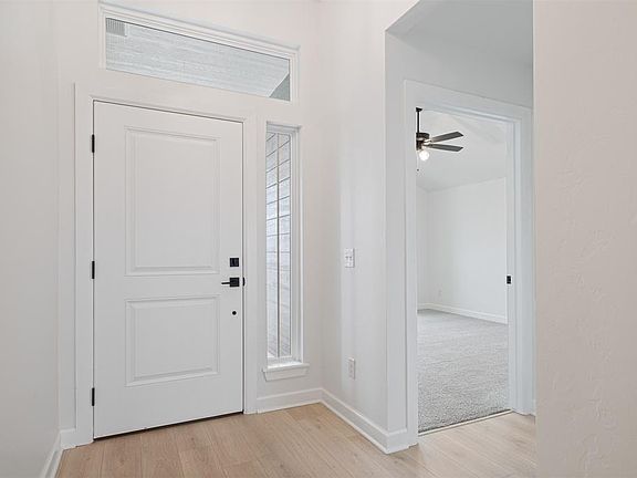 This 4 bedroom home features a split floorplan and large, central living area. The kitchen has stunning quartz countertops, spacious pantry, and a gas range. The living areas have hard surface durable flooring and a stunning fireplace for cozy nights at home. The primary bedroom is located at the front of the home and the primary bath has a quartz vanity with dual sinks, free-standing tub, tiled shower, and a walk-in closet. You will love the secondary bath that is compartmentalized with a shower and toilet in one section, and split vanities in the other to maximize privacy and efficiency. Additional garage storage space, as well as a covered back patio are also included. Abbot Lake is a beautiful community with convenient access to I 240 and Tinker Air Force Base in the Moore school district will wow you with its secluded location and two ponds. Amenities in this neighborhood include a fishing dock, playground, and splashpad. Included features: * Peace-of- mind warranties * 10-year structural warranty * Guaranteed heating and cooling usage on most Ideal Homes * Fully landscaped front & backyard * Fully fenced backyard. Floorplan may differ slightly from completed home.