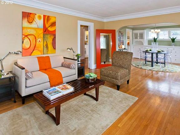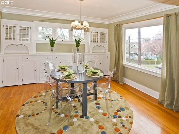 Charming 3 bed/1 bath bungalow w/hardwoods, built-ins in living and dining room, open, bright & spacious w/original moldings.Perfect combination of modern updates and original charm. Remodeled kitchen with marmoleum.Patio right off kitchen wonderful entertaining. Minutes to downtown, blocks from Willamette Pk, river & walking/biking trails!