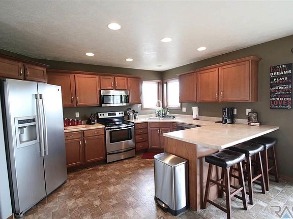 Spacious 4 bedroom, 2 bath split-level home located in desirable Southwest Sioux Falls! Front exterior has beautiful brick to add to it's character. Great open floor plan starts in the grand entrance foyer with 12 foot ceilings. Over 1000 sq ft on the main. Vaulted living room with archways that lead to kitchen with breakfast bar, birch cabinets and plenty of cupboard and counter space. Dining room has slider to deck and plush backyard with fence. Large closets in every bedroom. Lower level has cozy family room with extra storage space and a utility/laundry room.