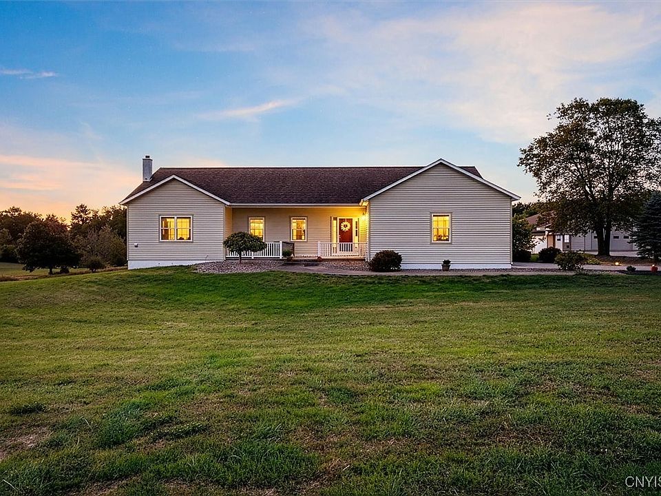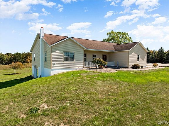 Welcome to this beautifully maintained Ranch home, built in 2005 and set on a peaceful 5.45 acre lot - offering space, functionality and versatility both inside and out. With 1,857 square feet on the main level, this home features a bright living room with hardwood floor and cathedral ceiling, dining room with atrium door to deck, and a well appointed kitchen complete with appliances and hardwood floors. Convenient first floor laundry adds everyday ease. The main level includes 3 comfortable and spacious bedrooms and 2 full bathrooms, including a private primary suite. The walk-out finished lower level expands your living space with a kitchenette, full bath and plenty of room to have the family room of your dreams. Above ground pool with two large patio areas. You will be amazed at the 40' x 30' detached pole barn complete with car lift is ideal for hobbyists, small business needs or extra storage. The building includes: 10' overhead doors, 12' ceilings, 27' x 21' rear loading area, 33' x 13'6" office space with 1/2 bath and 14' x 20' rear storage room. Whether you're looking for a private residence with room to grow or a flexible property with business potential, this one offers the best of both worlds.