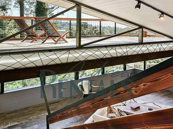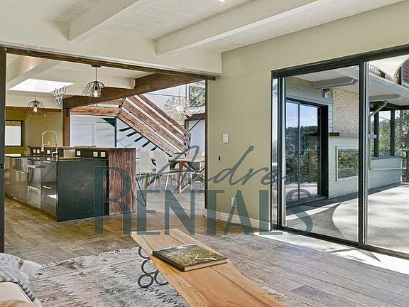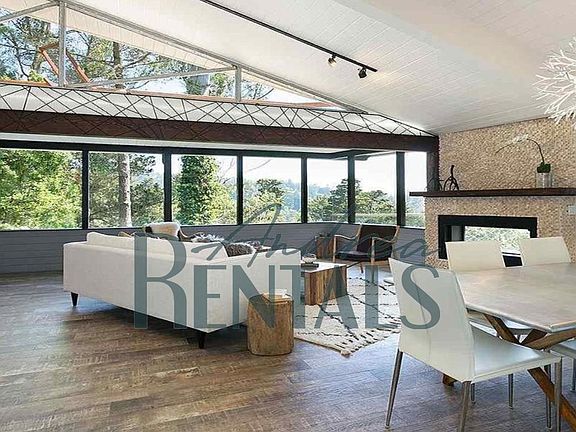 :: Given the current state of our county and world, AndreaRentals will first offer virtual tours of our properties by request. We are happy to answer any questions and will arrange Covid-safe in-person viewings for qualified applicants. Our goal is to do right by our clients and by the public at large. Stay safe out there. :: Gorgeous 1900's hunting cabin, re-imagined onto a modern treetop masterpiece above Montclair Village. With extensive use of creative materials including carbonized Douglas Fir, arc welded steel, and three-dimensional tiles, this stylish and unique home is one of a kind - and definitely not your typical rental home! This 3+BR/2BA home is on two levels, with treetop views, contemporary angles, 2 outdoor decks, and complete privacy. From the redwood-lined street, you walk onto a huge wooden deck with sweeping vistas, which is actually a roof deck over the upper story. The front door is tucked under a slanted roofline, and you step into a small landing that looks over the open concept living room/dining room/kitchen that is the heart of the home. This open concept great room has a wall of windows overlooking the treetops and a wide sliding door that leads to a large patio, perfect for outdoor dining. The intricately tiled gas fireplace is open to both the living area and the patio area, for perfect indoor/outdoor flow even in chilly weather. There is a central dining area, large enough for a table for 8, plus bar seating along the reclaimed wood divider between the dining area and kitchen. The modern kitchen is a chef's dream, with high-end cabinetry, quartz countertops, and a wide stainless steel sink with a gooseneck faucet. There's a new gas range, a three-drawer refrigerator, and plenty of storage for all your gadgets and dishware. On either side of the kitchen area are rooms with sliding contemporary doors that can open or close the rooms off from the main area. The room on the patio side of the kitchen is a den/office, with t a flat-screen TV and a large sliding door out to the patio. There is a 2nd bedroom next to the den, with a lofted workspace plus room for a queen bed. The room on the other side of the kitchen is set up as a kid's bedroom, with playful wallpaper and an ample-sized closet. The spacious main floor bathroom is tucked behind the kitchen, with a large vanity with double sinks and shower over tub. It's connected, jack and jill style, to both the loft bedroom and the hallway to the nursery bedroom. There is a laundry and pantry area in the hallway next to the nursery bedroom as well. A matching staircase below the entry staircase leads downstairs to the contemporary master bedroom suite, with a sunken office or exercise space, a wall of closets with built-in organizers, and a stunning tiled bathroom with skylights, redwood views, and an extra-large shower and bath. Storage space is available under the house, and there is parking for two cars on a parking pad off the street. Lovely Oakland hills location - just a 6 min drive from the heart of Montclair, or 6 minutes up to Skyline for easy hiking and biking. Deposit: $8500 Owner pays for garbage and deck maintenance Available now. Please call or email to take a look! Caitlin Ball DRE: 01822241 AndreaRentals: A Rental Concierge for Bay Area Owners and Renters
