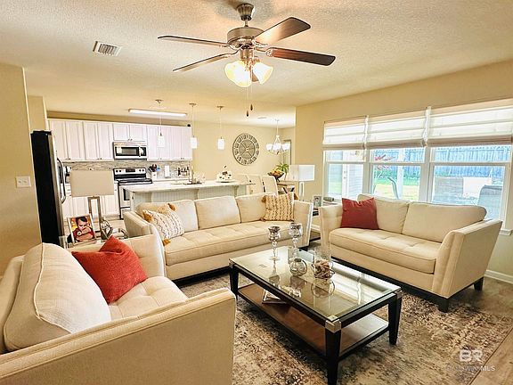 Welcome to 6906 Crimson Lane in the beautiful city of Gulf Shores! This amazing home is offered to be sold with everything you can possibly need to enjoy this amazing lifestyle! Everything must go with the property, furniture, tv’s, fixtures, linens, outdoor furniture, appliances, utensils… EVERYTHING!!! Don’t miss this amazing opportunity of getting this turn key home conveniently located just minutes away from the white sand beaches and shopping malls and make it yours! With the new city school and the new community park being built just around the corner from the home makes this amazing place a great opportunity for an investment as well. A large covered back patio with a small outdoor kitchen offers an amazing private spot for you and your loved ones to enjoy great gatherings. The large well decorated living room and kitchen brings all the charm and hospitality this home has to offer!! Call today and schedule a showing!