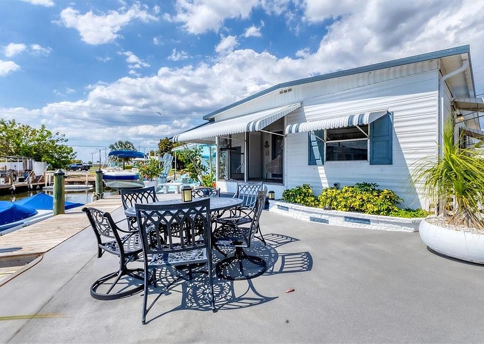 YOUR OWN CANALFRONT BUNGALOW IS A BOATER'S DREAM! Updated in 2020, this 2 Bedroom, 1 Bath Double-Wide Mobile Home is located in the highly desired 55+ Trailer Estates community. Your canal leads directly into Sarasota Bay. You won't find a better location...WATERFRONT AND across the street from the community pool, recreation buildings, shuffleboard, and fitness center. New Seawall and Dock in 2020! Serene canal-side screen porch. New kitchen cabinets, appliances and granite countertops. Laminate flooring throughout most of the home, and luxury vinyl plank floor in bath. New water heater 2024. WDO tented in 2023. Two 6' x 10' sheds (one for laundry/storage; one for workshop). RV carport. You own the land. Boaters have direct access to Sarasota Bay from your doorstep, or the Trailer Estates Marina. Enjoy the large, heated community pool, hot tub, gym and wood shop. The community buzzes with pickleball, shuffleboard, kayaking, horseshoes, bocce, dancing and more. A US Post Office on site. 10 minutes to Sarasota-Bradenton Int'l Airport. Convenient to shopping, restaurants, the Arts and everything Bradenton/Sarasota has to offer. Make this your forever home or snowbird hideaway!