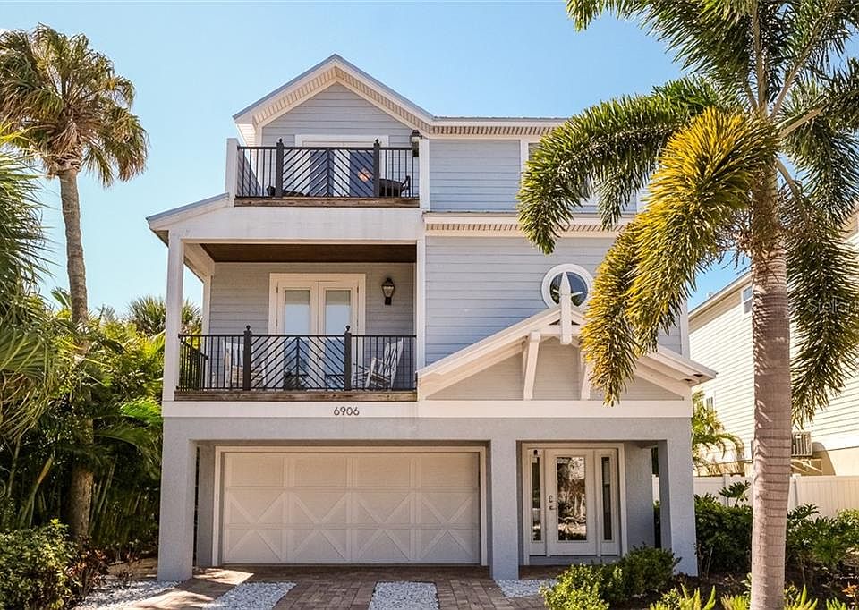 This spacious elevated key west style home features 6 bedrooms (3 full on-suite rooms) and 4.5 bathrooms. This property comes completely TURN-KEY and is furnished beautifully showcasing the coastal living lifestyle. High-end finishes are shown throughout the home featuring granite counter tops, solid wood cabinetry and stainless steel appliances. Off the kitchen and living area overlook the oasis of a backyard on 1 of the 4 large balconies this home offers. The large backyard is equipped with everything needed to allow for everyone to gather and create great memories. The features go beyond the private resort-style pool with spa, waterfall, and water slide as well as a covered lanai, outdoor kitchen, gas BBQ grill, dining and pool-side bar with a mini-refrigerator. The home is centrally located to the desired shopping areas and restaurants, and only a few steps away from the beautiful Anna Maria Island beaches. This is a great vacation home, currently operated as a successful rental property with a gross rental income of $153,300 in 2018. Don't miss out on this opportunity!