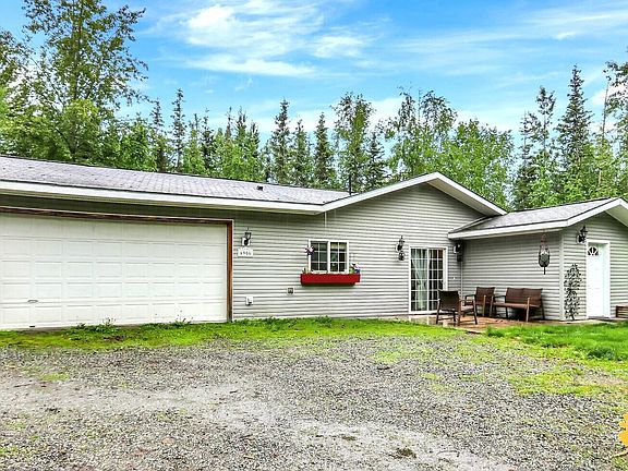 This ranch style home has 3 bedroom, 2 bathroom and 2 car garage. Built in 2002 with in-floor heat. Partially treed private yard sits on .92 acres with circular driveway and RV parking. Large bedrooms, vaulted ceiling and spacious garage. Less than 5 miles to Wasilla. All appliances stay with the home. Ready to move in. Call for a showing.