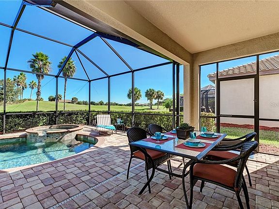 Light, Bright POOL Home with an OPEN FLOOR PLAN in a GATED community with AMENITIES and LAWN MAINTENANCE included... Welcome to your new Florida Home! The biggest decision you'll have to make is what to do each day...tennis, pickleball, work out at the fitness center or just chill by your pool, the choices are endless. The Sanctuary section of River Strand Golf & Country Club includes a social membership without the golf fees! The owner has added CUSTOM UPGRADES which include custom trim work in the Dining Room, guest bedrooms, Den, custom cabinetry in the Laundry Room, & enclosed front screen entry! Don't forget the EXTENDED LANAI with your own Pool & Spa! Both guest bedrooms have their own bathrooms PLUS the FLEX ROOM is a perfect home office, den, or "Man Cave." River Strand Golf & Country Club is a warm and friendly community with a 27-hole Arthur Hills designed golf course, 9 Har-Tru Tennis Courts, 8 Pickleball courts, 2 Resort-Style Pools, 6 Satellite Pools, Clubhouse with restaurant, social events, Community Center & 2 fitness centers in this luxury gated community with 24 hr. security & lawn maintenance . Convenient location to I-75, University Town Center, & beaches complete the package. River Strand Golf & Country Club More than a Community, It's a Lifestyle.