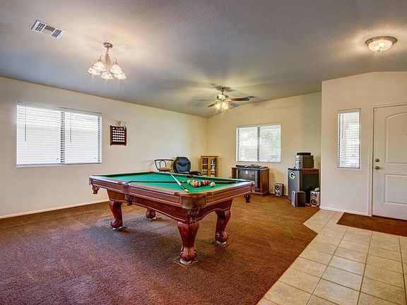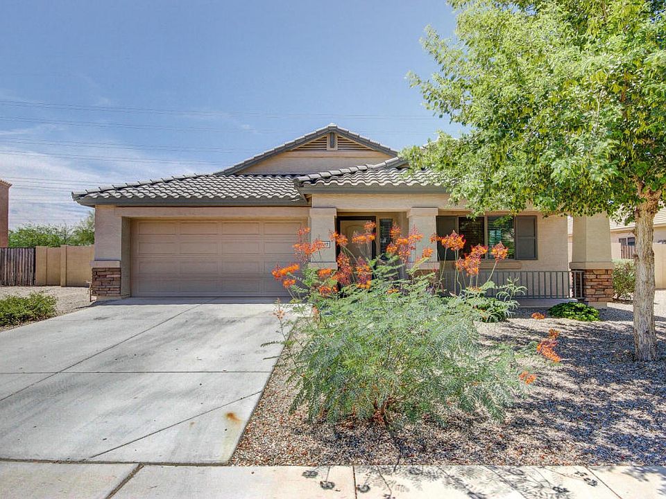 Absolutely Charming one level Home with RV Gate and front porch entry. Soaring ceilings, ceramic tile floor, upgraded lighting, crisp color palette, ceiling fans, and plush neutral carpet in all the right places. Spacious eat-in kitchen features center island, breakfast bar, black appliances, and plethora of wood cabinetry. Dining area with built-in desk and cabinets. Arcadia Doors to patio from family room. Grand master retreat, vaulted ceilings, walk-in closets, and private en suite. Huge backyard, covered patio, plenty of space for the pool and toys of your dreams! Call today and start packing!