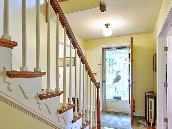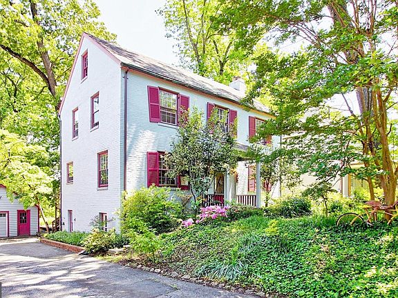 The hand crafted front door opens into a foyer. The focal point of the adjacent living room is a fireplace with blue art glass surround. At the rear of the room is access to a charming sunroom. The dining room is framed by French doors; the sunny kitchen is adjacent. A breakfast room connects the kitchen and living room. Upstairs is a large primary bedroom with its own bath and two other bedrooms and a second full bath. The basement level has a kitchenette, bedrooms four and five, and a full bath. The garage is 2-car size. The larger door was removed to use the space for other than cars.