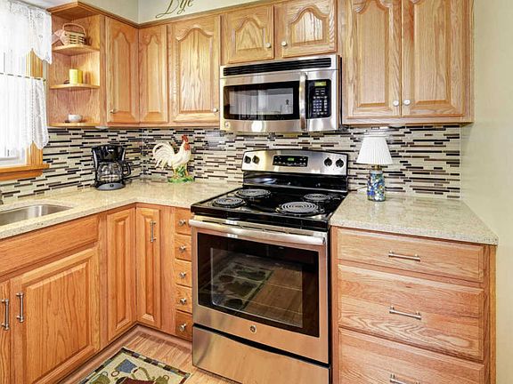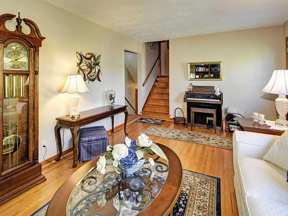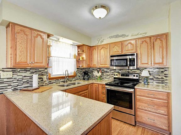 Beautifully kept 4 bedroom, 1 1/2 bath tri-level! Original hardwood floors in the first level living room, hallway and two bedrooms. Master bedroom has original hardwood floors under the carpet. The kitchen has been updated with quartz counters, new modern tile backsplash, new cabinets, hardware and lighting, new flooring, and stainless steel appliances. Bonus, the dishwasher has never been used! Three nice sized bedrooms on the second level. Full bath with updated vanity. Lower level boasts a large family room with fireplace, bedroom, half bath and laundry. Enjoy relaxing on your covered porch in your large backyard oasis with gorgeous landscaping. Additional entertaining area on the uncovered patio gives added space. Don't miss out, this won't last long!