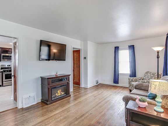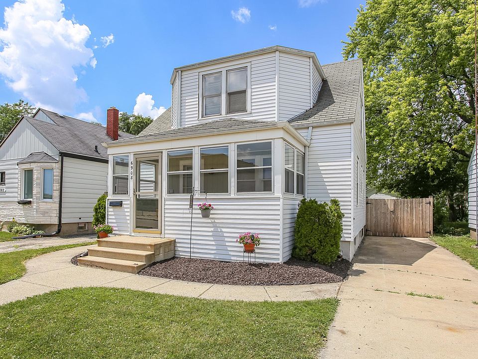 Relax in the enclosed front porch or on the spacious patio in the fenced yard. Updated bathrooms and kitchen with stainless appliances, room in basement for extra space and close to school.