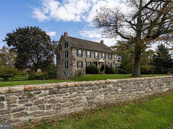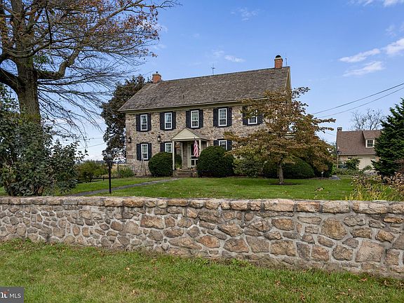 Welcome to this stunning Georgian-style, 18th Century Stone Farmhouse in historic Oley Township. Situated on approximately 1.5 acres, this home has the perfect combination of original, charming features and modern updates. Pulling in, you’ll instantly feel the love and care that this property has received over the years. As you enter the screened-in porch, the warmth of this home welcomes you. The kitchen space was tastefully renovated with features that remain true to its original time period – custom reproduction style cabinetry with matching china cabinet with glass doors, a large farmhouse sink, hidden wall oven and quartz countertops are combined with the original wide-plank hardwood flooring and exposed wood ceiling beams. Through the kitchen, the dining room space contains original hardwood flooring, a built-in corner cabinet and several large windows with original deep windowsills. Across the wide hallway/foyer, the large living room is a perfect gathering space, with its many windows, hardwood floors and built-in corner cabinet. Cozy up with a good book and enjoy a roaring fire from your pellet stove in the walk-in fireplace in the library, complete with exposed beams, built-in cabinet and a floor-to-ceiling built-in bookshelf. The main level also contains an updated full bathroom with tiled shower, newer fixtures and frosted windows for privacy. A large laundry room with wainscoting rounds out this level. Upstairs the primary bedroom suite is large and features wood floors, exposed wood ceiling beams, and a large walk-in closet with window, which is rare in homes of this age. The renovated primary bathroom features a double sink vanity with matching tall chest, an oversized walk-in shower with frameless glass door surround and tile flooring complete with radiant heating. Across the hall there are two additional large bedrooms, with wood flooring and exposed ceiling beams. The charming hall bath is timeless, with a claw foot tub, exposed beam ceiling and wood floors. There is a huge walk-up attic that includes a cedar closet and plenty of space for storage. The full basement is massive and comes complete with a “whiskey door” and an abundance of storage space throughout many separate spaces. The well-manicured outside grounds of this property are just amazing - a stone retaining wall runs along the entire front of the property, split-rail fencing surrounds a good portion of the flat back and side yards, the stone patio has recently been redone, there is an original Smokehouse right behind the house, the circular driveway has enough room for multiple vehicles and a there is a large, 3-car Carriage style garage with a potential living space above (this living space/guest quarters is in need of a renovation and is being sold in As-Is Condition). You’ll definitely want to sit outside and enjoy the truly majestic sunsets with mountain back drop. All this and the property is surrounded by over 100 acres of farmland that is protected conservancy land. Rich in history, Oley Township is one of only 3 other townships in the United States to be listed in their entirety on the National Register of Historic Places. The sellers are sad to leave this home – they absolutely love everything about it, and you will too!