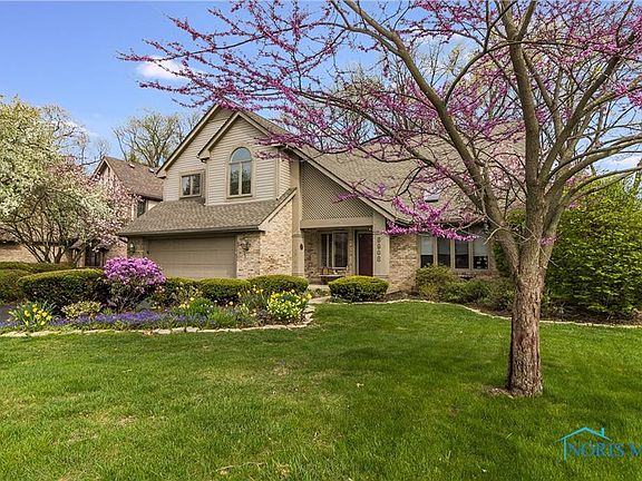 FANTASTIC 4 bed, 2.5 bath home on a lovely wooded lot in Sylvania Twp’s St James Woods! Two-story foyer w/ an expansive staircase welcomes you and your guests w/ grandeur. Hardwood floors in most rooms on the main level. Vaulted family room w/ woodburning fireplace and wet bar – great for entertaining. Upper level primary suite w/ dual walk-in closets and a luxurious en-suite w/ soaking tub. New flooring in bedrooms. Partially finished bsmt offers endless possibilities. Fenced-in back yard boasts a wonderful deck, a concrete pad for basketball and updated irrigation system! ROOF NEW in ’23!