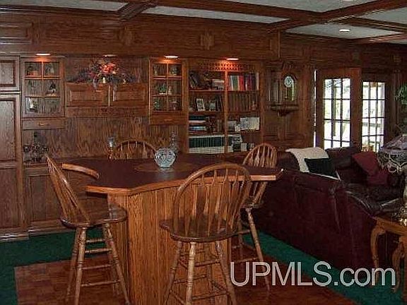 This property has it all! Stone and brick home. 650' of riverfront on the Escanaba River. The home sits on 1.48 acres. There is an atrium attached to the rec room which has a wet bar, custom made table, wood stove fireplace and custom cabinets. Master bath features an extra deep whirlpool tub. Kitchen has great ambiance with beautiful cabinetry. Second fireplace in living room (17' x 28') overlooking the river. New roof in 2022. Detached garage 24' x 36'. This is a place of serenity since there is no one living near you on the river - yet 1/4 mile off highway between Escanaba and Gladstone. To see this property call Jon at 480-204-2895.