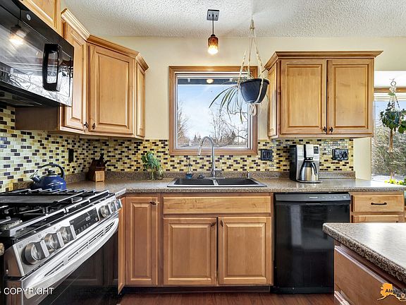 Charming 3 bedroom, 3 full bathroom, multi-level home in sought after Sand Lake area. Vaulted ceilings, finished basement w/ bonus family room, fireplace, new gas stove, dishwasher and hot water heater in 2024. Newer paint, carpet, custom closet organizer in the master. 2-car garage w/ built-in shelving & recently expanded driveway w/ample parking. New retaining wall & room to park your RV! Private back deck overlooking large, fenced treed lot w/ garden beds, perennials, cherry, apple & crab apple trees. Enjoy a short drive to Kincaid Park, trails, shopping, restaurants & best of all.. private neighborhood access to motorized Sand Lake & picnic area! You don't want to miss this one!