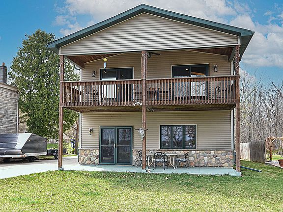 There are many great features to this lake home. You don't want to miss this opportunity of 92 ft. of desirable Lake Tichigan frontage, ample amount of parking, a 3 car garage with 8 ft. garage doors and stubbed in for water & gas with just shy of half an acre. The views are gorgeous from all angles of the balcony, open concept kitchen, living room and the 1st floor walk out. Grab your shorts and enjoy the swimmable frontage. There is ample amount of room for jet skis, boats and a swimming raft. Enjoy the July 4th fireworks, water sports and the lake views from the comfort of your deck and home. This home is only 13 years old and is ready for you. Lake Tichigan and Fox River serve over 1,100 acres.