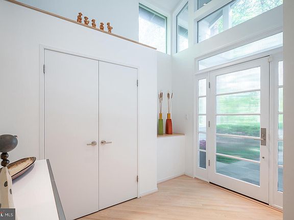 Listed on the market for the first time, 6908 Persimmon Tree Road is a unique architect- designed and owned custom contemporary residence on a one-acre wooded lot in Bethesda. The owners, a FAIA-recognized architect and a leading interior designer, have lovingly cared for and expanded the home since designing and building the residence from the ground up in 1976. This stunning contemporary home with walls of glass is a one-of-a-kind residence that offers a truly unique living experience that seamlessly blends modern luxury with natural beauty. Set far back from the street and approached by a long driveway, the house has a more private front while unfolding amid soaring open spaces. The 700 square-foot carport with storage closet is set to side of the home to keep the focus on the main structure. Clean lines, soaring ceilings, and an open-concept layout create a sense of spaciousness and light. The 4,600 square-foot home features four bedrooms, including two primary suites, 3.5 bathrooms and two separate home offices. A large renovated eat-in kitchen, separate dining room, formal living room and den complete the main living spaces. Recessed lighting can be found throughout the home. More than 2,500 square feet is located on the main level Outside, there is 1,000 square feet of recently stained wood deck running the length of the first floor with access from every main-level room. The large, 6,000 square-foot useable level rear yard is wooded at the back of the property. The main entrance is marked by a large two-story entry foyer with covered front porch. After food shopping, the entrance off the double car-port area can be used to enter the mud room/kitchen. The mud room with laundry and utility sink opens into the large modernist kitchen with floor to ceiling storage cabinets with custom built in shelves and drawers by Neff, 10-foot long serving island, separate wine refrigerator, microwave, oven, warming drawer, six-burner electric cook top and recipe desk area. Beyond the kitchen is a main floor powder room, a formal two-story dining room with built-in cabinets and multiple living areas, including the living room and den, gallery area with built-in planter and office with large walk-in storage closet. The new primary suite sits at private section at the back of this main level. Both the large living room and family room with soaring ceiling, clerestory windows and built-in cabinets have fireplaces. The first-floor large primary bedroom suite with soaring ceiling features a recently renovated five-fixture bath and large dressing area with natural light and built-in dressers, free standing tub, walk-in shower and clerestory windows. This area has its own mechanical system. The top level includes three large bedrooms, including the original primary bedroom suite, a high sloped ceiling open play area with clerestory windows, the third full bathroom with adjacent linen closet and office space with built in cabinets. The bedroom suite features a bath, double vanity, dressing area with high ceiling, clerestory windows and balcony. The finished basement includes a play area, storage and the main mechanical systems. The home has a Guardian alarm system. Schools are Bannockburn Elementary, Thomas W. Pyle Middle School and Walt Whitman High School.