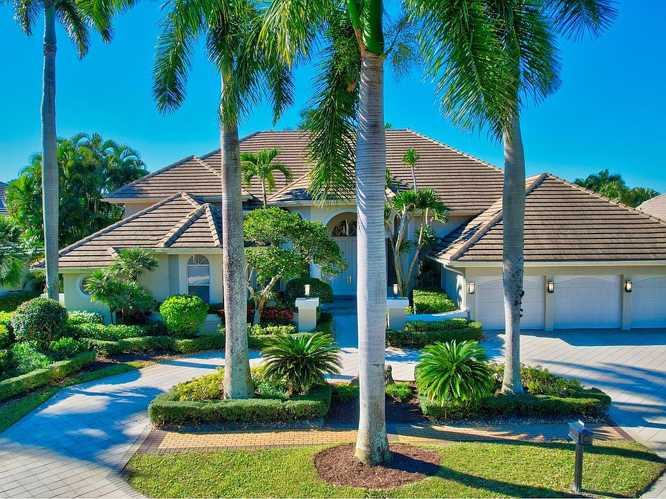Four-bedroom + office home with Southern exposure and golf & water views located on a desirable street in St. Andrews CC. The interior is open, airy, light and bright, with volume ceilings and floor-to-ceiling windows. New roof was just installed in 2018. Ground-level master suite has a separate sitting area, his & her walk-in closets, and renovated bathroom. The eat-in kitchen, which opens to the breakfast area and family room, has an island, double ovens, and plenty of storage. Enjoy the Southern exposure and sprawling lake & golf course views from the private backyard, with spacious open & screened-in patio areas, pool, and summer kitchen.