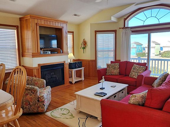 Great views, mere steps to the beach access, private pool, game room, just in time for income to start rolling in! This 6 bedroom, 5.5 bath cottage was designed to accommodate every vacationers' checklist! Top level features unbeatable views to east and west with decking to take it all in. Wood flooring accents natural trim finishes, great room features gas fireplace and grand vistas. Large kitchen with breakfast bar services the formal dining area with cathedral ceilings and dramatic sound views. Top level king suite also accesses west deck with views, plus there is a convenient powder room in the main living area. Mid level spotlights three private suites, two of which have private balconies. Head to the first level for a game of foosball in the game room, or grab a drink and a snack at the wet bar with fridge and microwave. Full bath has direct access to the deck leading to the pool area: no wet swimsuits dripping through the house! Great beach access is only 160 feet away, with shopping, dining, putt putt and water sports facilities in easy distance. Fun for the entire group!