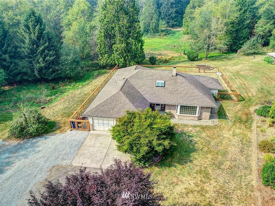 Beautiful 3 bdrm RAMBLER situated on 7 ACRES of majestic forested land with rolling fenced pastures, fruit trees, garden areas & walking distance to Pilchuck Tree Farm Riding Trails for your equestrian activities. Property includes additional outbuildings, 2 horse stall, chicken coop & enough parking for all of your additional cars, tractor & toys. Home features Living Rm, Formal Dining Rm, spacious Kitchen & eating area, Family Rm with wood burning stove & large back deck overlooking paradise.