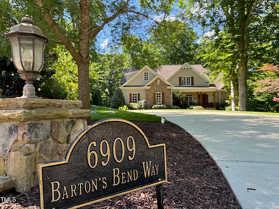 Happy July 4th Weekend Everyone! Don't Miss Your Opportunity To Celebrate Labor Day Weekend In Your New Home at 6909 Bartons Bend Way. This Stunning Custom Home Is Nestled Within A Spacious Cul Du Sac On Almost 2 Acres Of Privacy. BMP Area To Right Side Of Home Adds to Privacy. Seller Has VA Rate Of 2.25%. Assumable VA Loan Opportunity For Qualifying Buyer. Flexible Floor Plan Offers Primary Suite Options On The Main Floor & Second Floor, This Floor Plan Easily Lends Itself To Multi-Generational Living The Picturesque Pool Friendly Setting Is Waiting For Your Cookouts, Yard Games And Outdoor Entertaining Events. Built By The Award Winning Custom Home Builder Homes By Dickerson. This Is The Home You Have Been Trying To Find! The Cul Du Sac And Long Private Driveway Greet You. The Spacious Front Porch Welcomes You. Opening The Front Door...Your Heart Knows That This Will Be Your New Home. Stepping Inside, It's Easy To Imagine Your Family Celebrating Holidays Around The Dining Room Table. The Vaulted Family Room And Screen Porch Are Waiting To Host Game Days And Game Nights. Family And Friends Will Gather Easily Around The Spacious Leathered Granite Island. Enjoy Preparing Your Favorite Recipes On The Viking Gas Cooktop. Entertaining Will Be A Breeze In The Keeping Room Complete With Wet Bar/Coffee Area With Icemaker. The Main Floor Primary Suite Is Calm And Inviting. The Closet Space Is Spectacular! Also, On The Main Floor You Will find a Guest Bedroom With Ensuite Bath That Can Also Be Used For The Perfect Home Office Space. All The Second Floor Bedrooms Are Spacious. This Floor Plan Makes It Easy To Use The 2nd Floor Front Bedroom As A Second Floor Primary Suite. Expansive Storage Opportunities In The Two Walk-in Attics On the Second Floor. Over-sized Bonus Room With Walk-in Closet And Beverage Center. Room For Game Tables, Large Screen Tvs And Comfortable Sectionals. HIghlights Of The Home: -Large Private Yard With Almost 2 Acres Of Room To Play And Roam. Easily Walkable To Falls Lake From Back Of Property. -Invisible Electric Pet Fence In Front And Back Yard -Vaulted Ceilings In Family Room And Screen Porch -Custom Built-in Cabinets In Family Room And Mudroom -Custom Designed Fireplace With Custom Solid Cedar Mantle -Tankless Water Heater And Sealed Walk-in Crawl Space -1st Floor Primary Suite With Custom Designed Closet With Drawers, Floor Length Mirror And Generous Shelving -Energy Star Certified Home -Bonus Room Has Wet Bar Area/Refrigerator/Sink/Large Storage Closet -Storage/Outdoor Flex Space Below Deck And Screen Porch -Custom Molding, Mirror and Lighting In Stairwell -Custom Up/Down Shades In First Floor Bedrooms, Bathrooms And Keeping Room. -Spacious Front Porch With VIews To Cul Du Sac -Wide Doorways and halls throughout Kinetico whole house carbon filter water softer. reverse osmosis at kitchen sink.