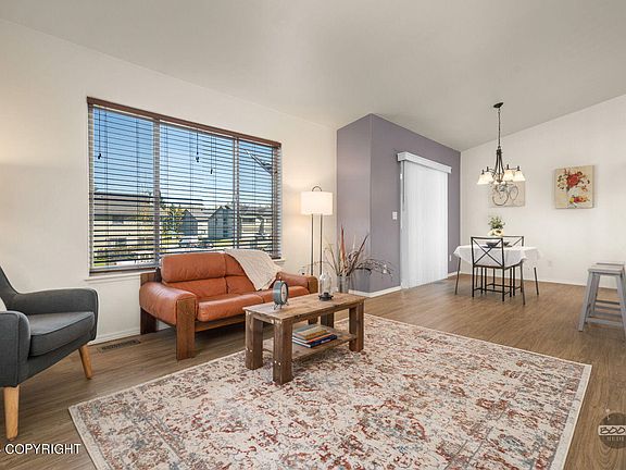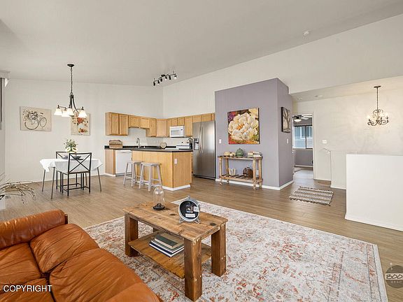 South Anchorage Townhome with convenient access to Campbell Creek trail system for year-round hiking/biking activities. Open concept living space with lots of natural light. Large master bedroom with walk in closet and attached bathroom upstairs, two bedrooms and one bath downstairs, two car garage. Low dues.