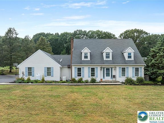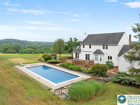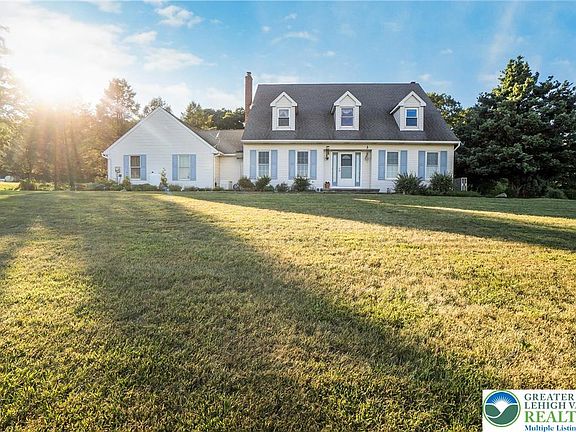 Discover the serene country lifestyle you’ve been dreaming of, nestled on 12.4 picturesque acres in Lowhill Twp with incredible panoramic views of rolling hills and valleys. This beautifully maintained Cape Cod offers over 2,400 sq ft of living space with 3 spacious bedrooms, 2.5 baths, and a bright, open layout designed for everyday comfort and gatherings. The heart of the home is a large kitchen with custom cabinetry, double pantries, and a sunny breakfast area flowing into the family room featuring a cozy stone wood-burning fireplace and sliders to your private back deck. A formal living and dining room, 1st floor laundry/mudroom, and a lovely sunroom with skylights complete the main level. Upstairs, the primary suite features double closets, two walk-ins, and a spacious bath with soaking tub and separate shower. Outside, enjoy your in-ground pool, fenced garden, and expansive yard, perfect for entertaining or quiet relaxation. This property is zoned Rural Conservation, allowing you to keep horses, livestock, and build barns or paddocks to create your ideal homestead or equestrian retreat. Additional highlights include a large barn with horse stalls and workshop, an attached garage with an inspection pit, a Generac generator, and a full basement with a separate entrance, ideal for workshop or hobby space. All located within the desirable Northwestern Lehigh School District and just a short drive from Route 78 for easy commuting while preserving privacy and country peace.