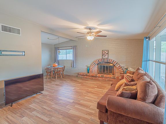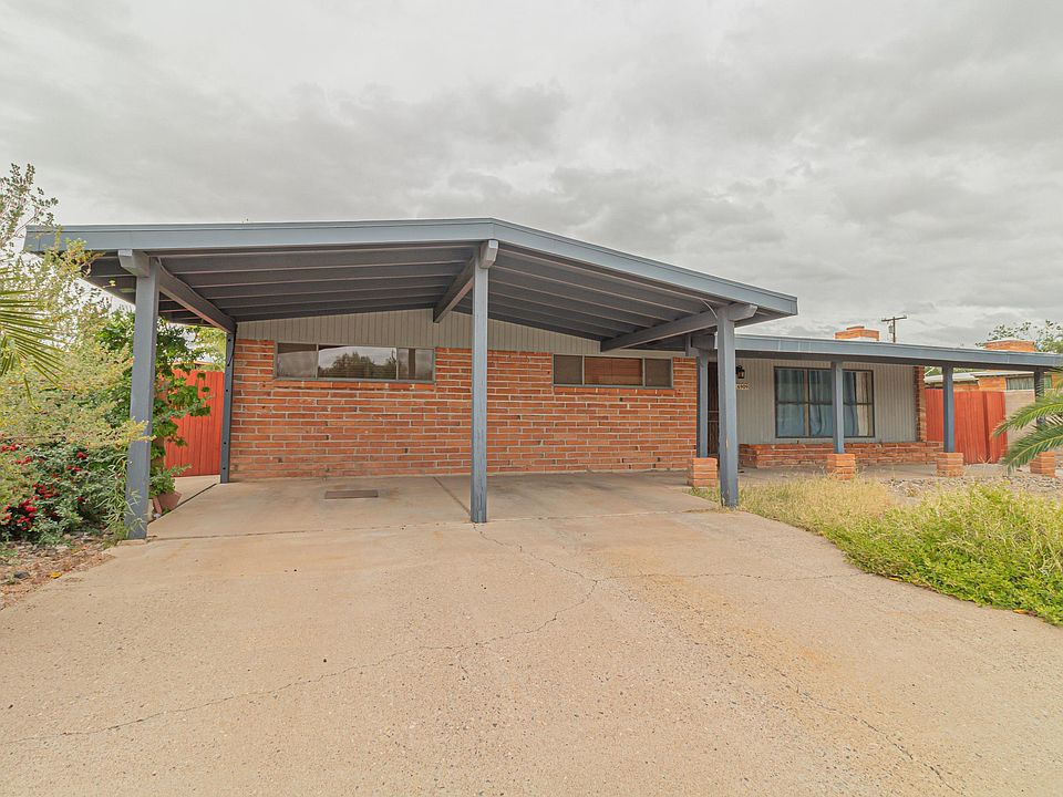 Come take a gander at this lovely home located in central Tucson. This 3 bed 2 bath house sits comfortably on .2 acres elevated above the street below. You will be welcomed in this home home being greeted by lovely tiled floors as well as a wood burning fireplace located in the living room. Just off to the side of the fireplace you will find your dining area to keep you warm on those cold winter evenings. Enjoy a large kitchen complete with its very own island in the center of the kitchen. The backyard is sure to provide a relaxing environment with its covered patio and grass patch in the yard. Make this home yours while you still can!