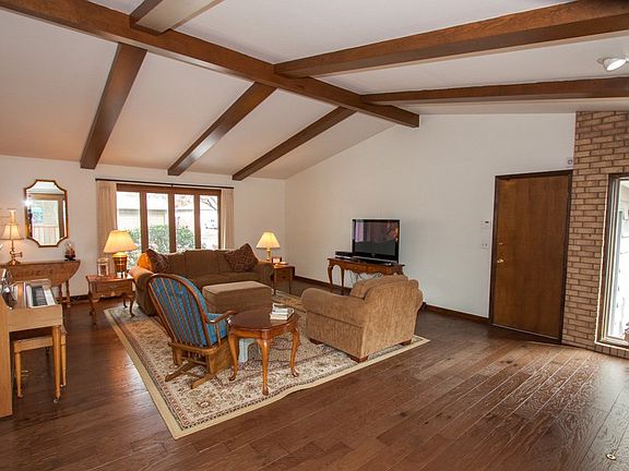 Terrific 3 bedroom, 3 full bath ranch in Rockhurst neighborhood. Spacious living room with vaulted beamed ceiling, gas fireplace, built-ins and glass door leading out to the deck. The kitchen boasts granite countertops, decorative backsplash, eating space with large picture window offering plenty of natural light. Laundry room is conveniently located off the kitchen. Master bedroom displays double closets and master bath. Wood flooring throughout the main living area except bedrooms. The finished basement includes family room, rec room with closet and office with closet plus a full bath. Basement has a daylight window so a 4th bedroom is possible. Backyard is fully fenced. All information deemed reliable but not guaranteed.
