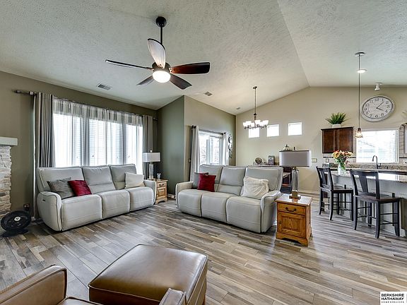 - Features: Window Covering, Fireplace, Cath./Vaulted Ceiling, Ceiling Fan(s), Luxury Vinyl Tile