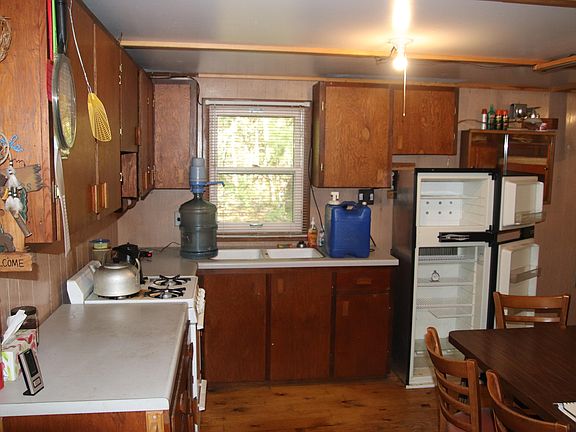 Cabin currently set up for solar 12 volt system but could be converted back to a 110 volt generator source. Has a propane fridge and stove.