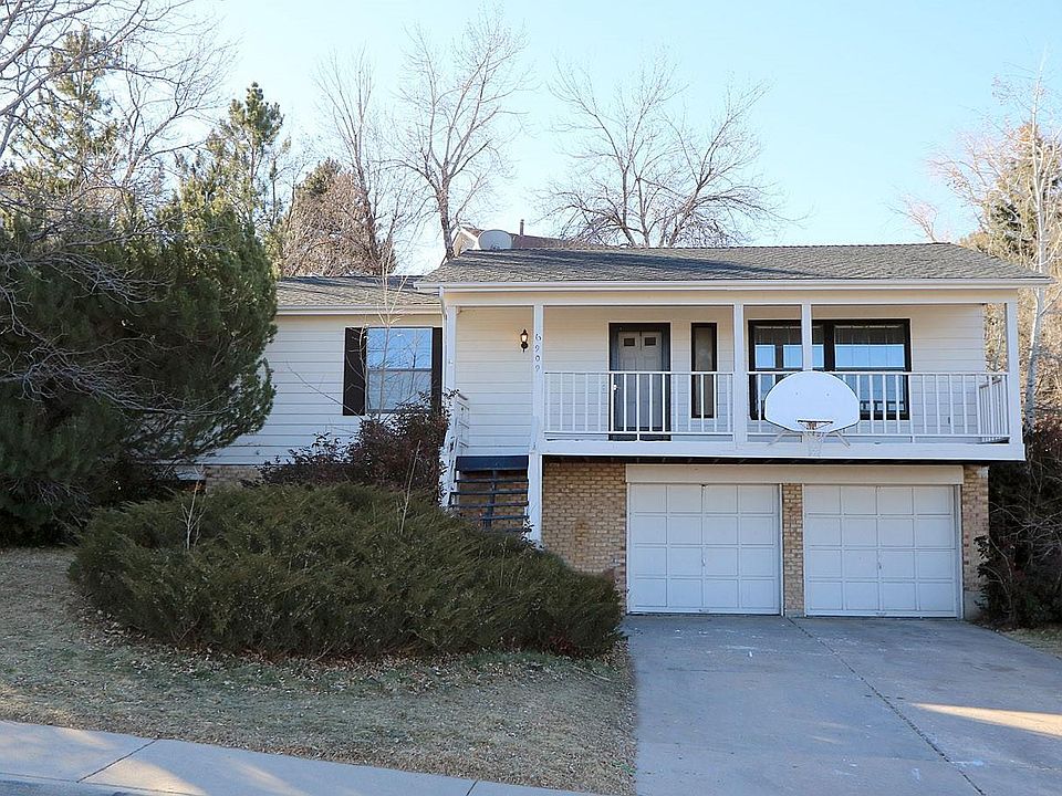 Great Starter Home in Desirable Columbine West Neighborhood. Spacious Raised Ranch with open floor plan, 3 bedrooms and 2 bathrooms on the main level plus great room, bedroom and 3/4 bathroom in the lower level. Just installed new carpet and interior paint. Newer furnace and hot water heater. Large private lot with mature trees, covered deck off the main level and some mountain views. This home has been a rental and has great revenue potential or fix up opportunity.