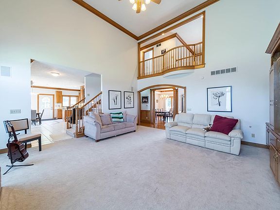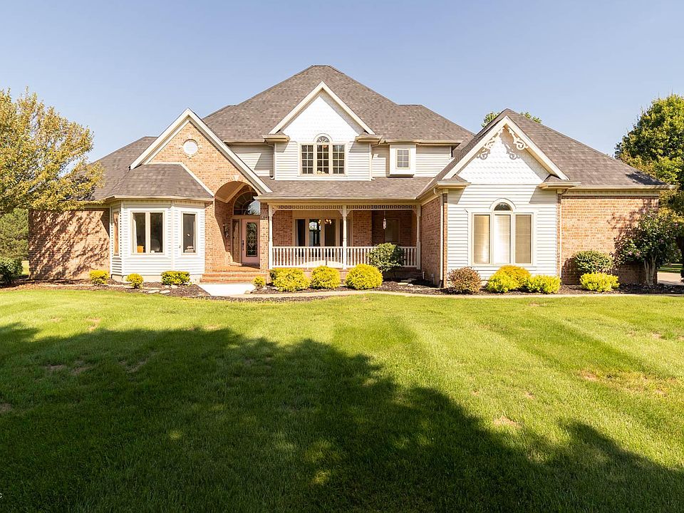 Beautiful brick home situated on a gorgeous 2 acre lot with an abundance of space and quality throughout! The impressive 2 story foyer with hardwood floors leads to the open-concept great room with oak built-in shelving, a fireplace and large windows offering plenty of natural sunlight. The recently updated kitchen features lots of cabinet space, newer appliances,built-in oven, island and breakfast nook. First floor master suite with whirlpool tub and an extra large walk-in closet. The upper level offers 3 additional bedrooms and a Jack-and-Jill bath. The finished lower level allows even more living space with a rec room and bar. Enjoy the summers on the deck and beautiful in-ground swimming pool on this private peaceful lot.